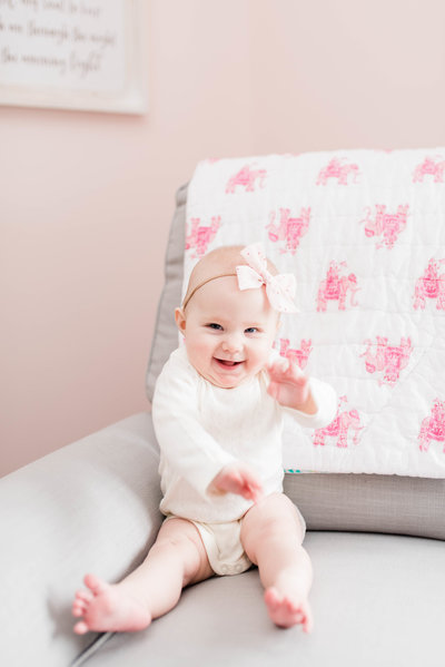 I want to use this opportunity to share this: please utilize extreme caution when attempting to photograph your baby on your own. Many of those cute poses you see on Pinterest, such as the "froggy" pose are actually composite images. Never, ever leave baby unattended, suspend baby from a swing, or prop baby up on her hands without assistance for the sake of a photo. It's not worth risking baby's safety!