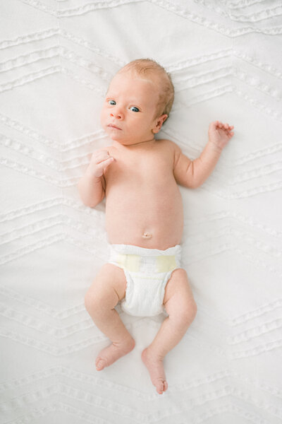 I can't stress this enough: keep it SIMPLE for the kiddos! Babies photograph best in plain white onesies so that we can focus on all of their beautiful little features. To add a little variety, add on a pair of neutral pants or wrap her up in a swaddle blanket!